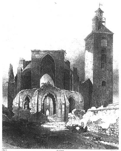 On peut voir, en bas à droite, le pignon ruiné du bâtiment mauriste.